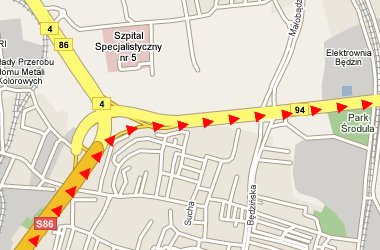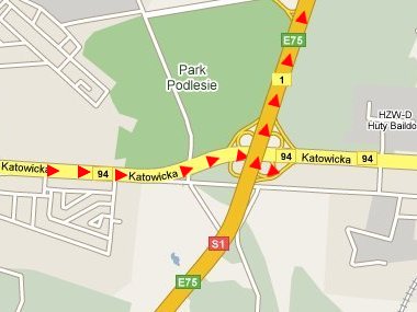 Wyjechać z Katowic S86 (biegnie obok IKEA) i w Sosnowcu na rozwidleniu odbić na DK94 (Kraków, Olkusz). Min±ć Auchan (Sosnowiec) i Real (D±browa Górnicza) i dojechać do węzła z S1.
