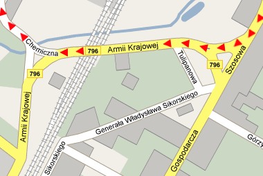 Włączyć się do ruchu na drodze 796 Zawiercie - Dąbrowa Górnicza (biegnie przez Ciągowice, Chruszczobród).